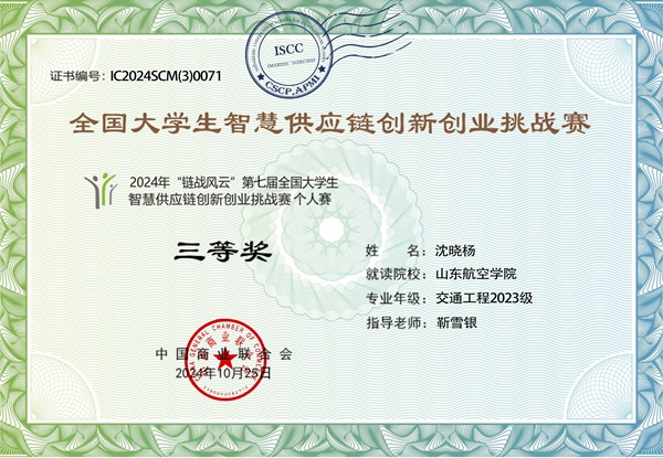 沈晓杨,男,汉族,2005年05月生,中共预备党员,英国上市公司官网365交通工程专业,2023年入学。在校期间,荣获校级一等奖学金两次、国家励志奖学金一次,先后荣获英国上市公司官网365“优秀员工干部”、“优秀团员”、“优秀志愿者”、“十佳团干部”等荣誉称号,获得第七届全国大员工供应链创新创业挑战赛个人赛三等奖等校级以上奖项21项。