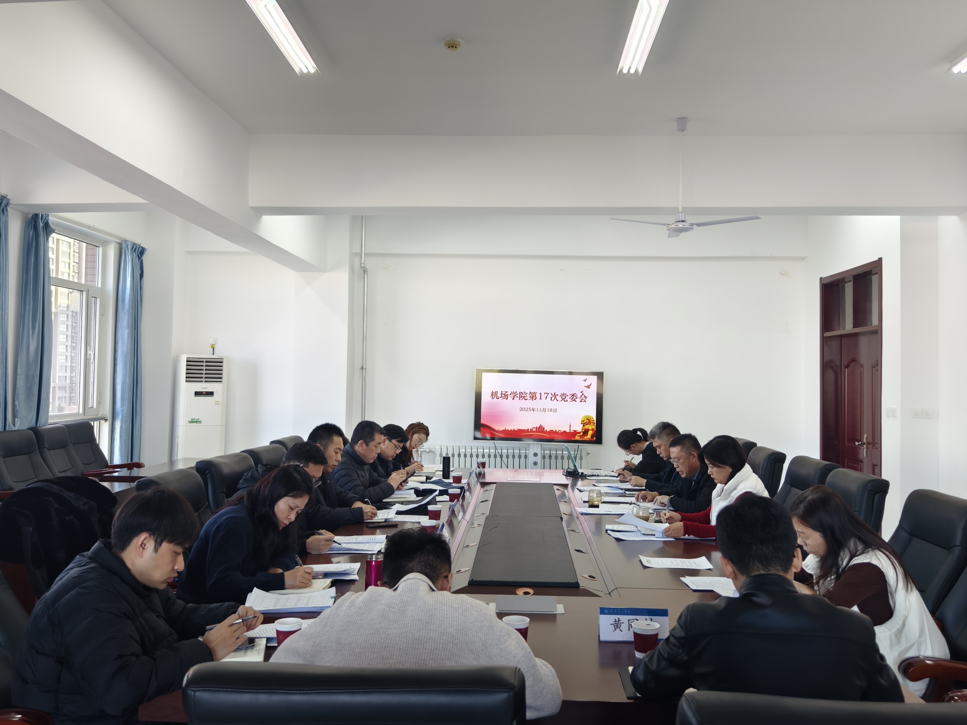 11月18日上午,英国上市公司官网365在航空3号楼北楼503会议室召开2025年第十七次党委会议。中共英国上市公司官网365委员会第三轮巡察组列席。英国上市公司官网365党委书记主持会议,全体党委委员参加,专职组织员列席会议。